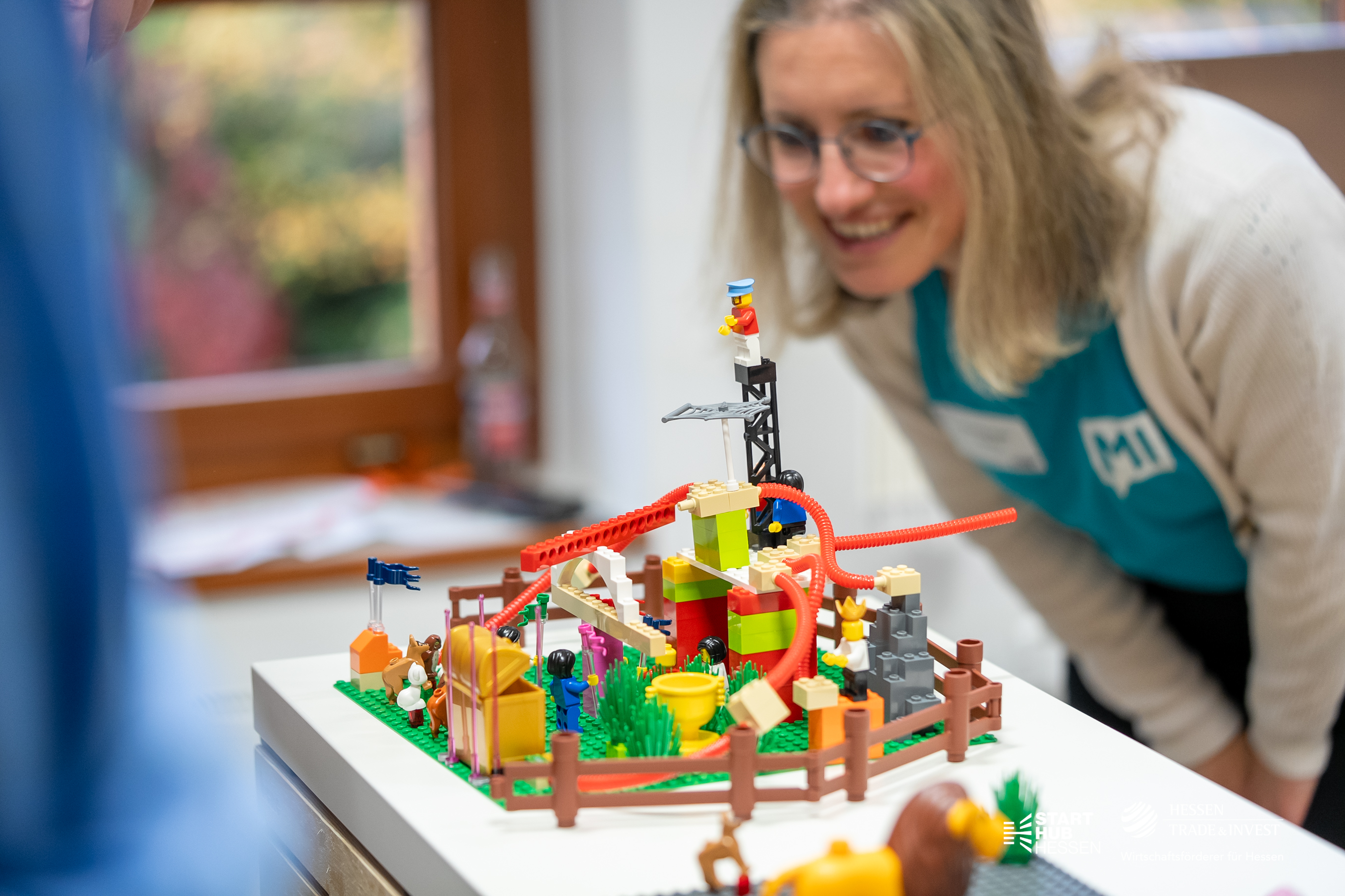 Kern des Workshops ist die Methode LEGO® SERIOUS PLAY®. Durch das Bauen von Modellen werden Gedanken plastisch und nachvollziehbar. Das schafft ein gemeinsames Verständnis und ermöglicht es, Lösungsansätze direkt zu testen und zu validieren. Auf diese Weise könnt Ihr effizient entscheiden, welche Ideen Ihr weiterverfolgt werden und was angepasst oder verworfen werden sollte.