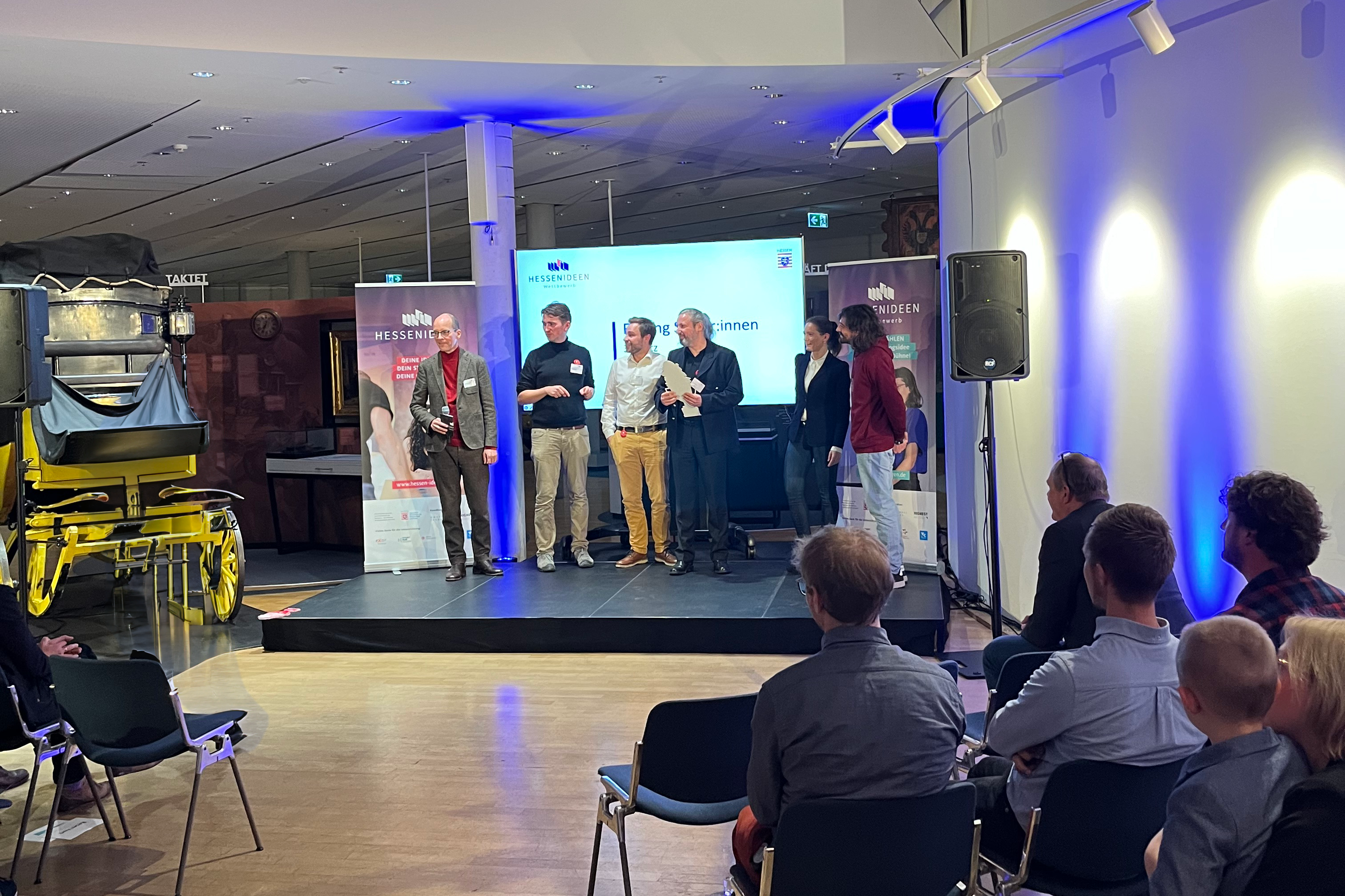 Der Wettbewerb für Hochschulgründungsideen „Hessen Ideen“ fand in diesem Jahr zum achten Mal statt; teilgenommen haben 34 Teams aus 15 Hochschulen. „Hessen Ideen“ richtet sich an gründungsaffine Hochschulangehörige, die mit ihrer Idee für ein Unternehmen noch am Anfang stehen. Gutachterinnen und Gutachter hatten die Projekte bewertet, parallel stimmten die Userinnen und User online für ihre Lieblingsidee ab. Auf diese Weise kamen elf Geschäftsideen ins Finale und präsentierten sich vor einer Jury, die über die Preisträgerinnen und Preisträger entschied.
