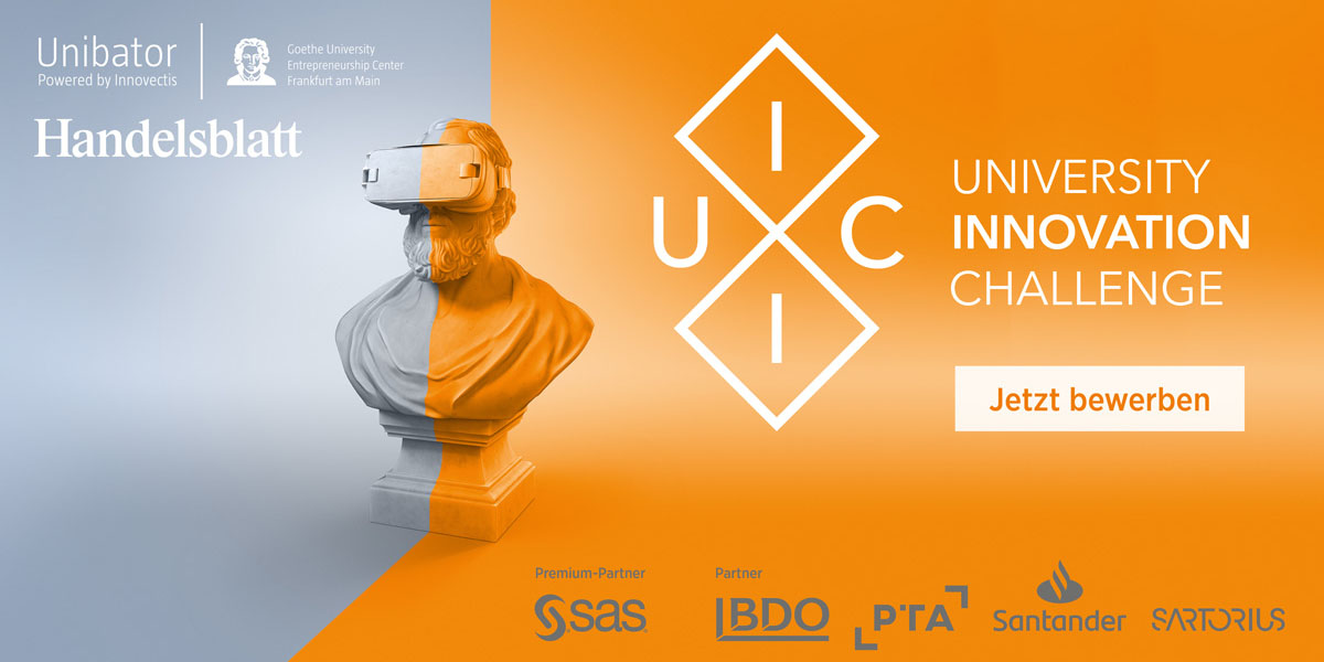 Gemeinsam mit dem Handelsblatt veranstaltet der Unibator, das Gründungszentrum der Goethe-Universität Frankfurt am Main, die University Innovation Challenge.